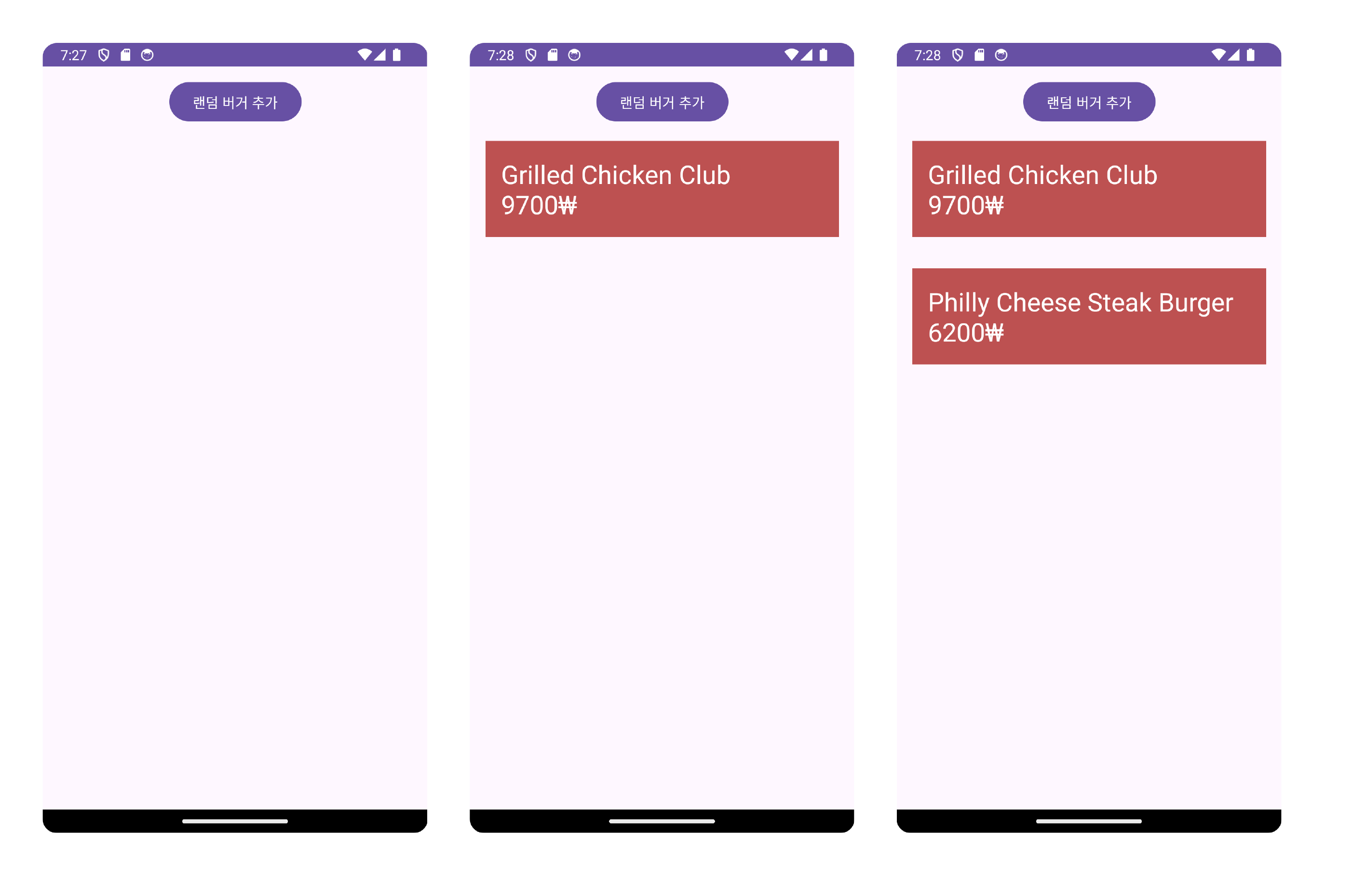 ์์ ๊ฐ์ด ๋งจ ์์ ๋ฒํผ์ ๋๋ฅด๋ฉด, RecyclerView์ Item์ด ํ๋์ฉ ๋๋ค์ผ๋ก ์ถ๊ฐ๋๊ฒ ์ฑ์ ์์ ํ๋ค.