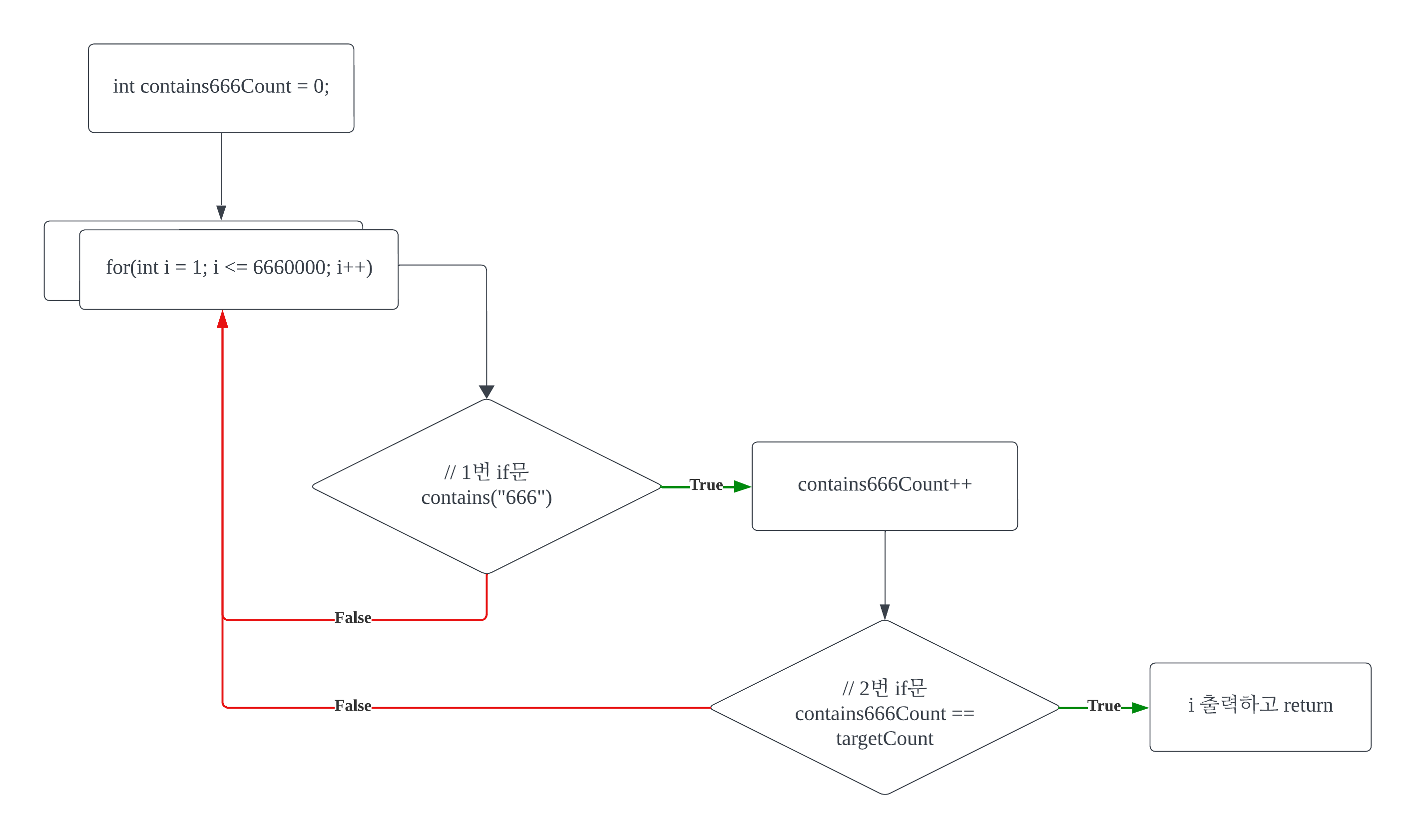 1번 if문과 2번 if문을 병렬로 두는 코드보다, 2번 if문을 1번 if문 안에 넣는 코드가 더 빠르다. 왜냐하면, contains666Count가 갱신되지 않았다면, targetCount와 비교한 결과 또한 갱신되지 않을 것이기 때문이다. contains666Count가 변해야, 2번 if문에 의미가 생긴다.