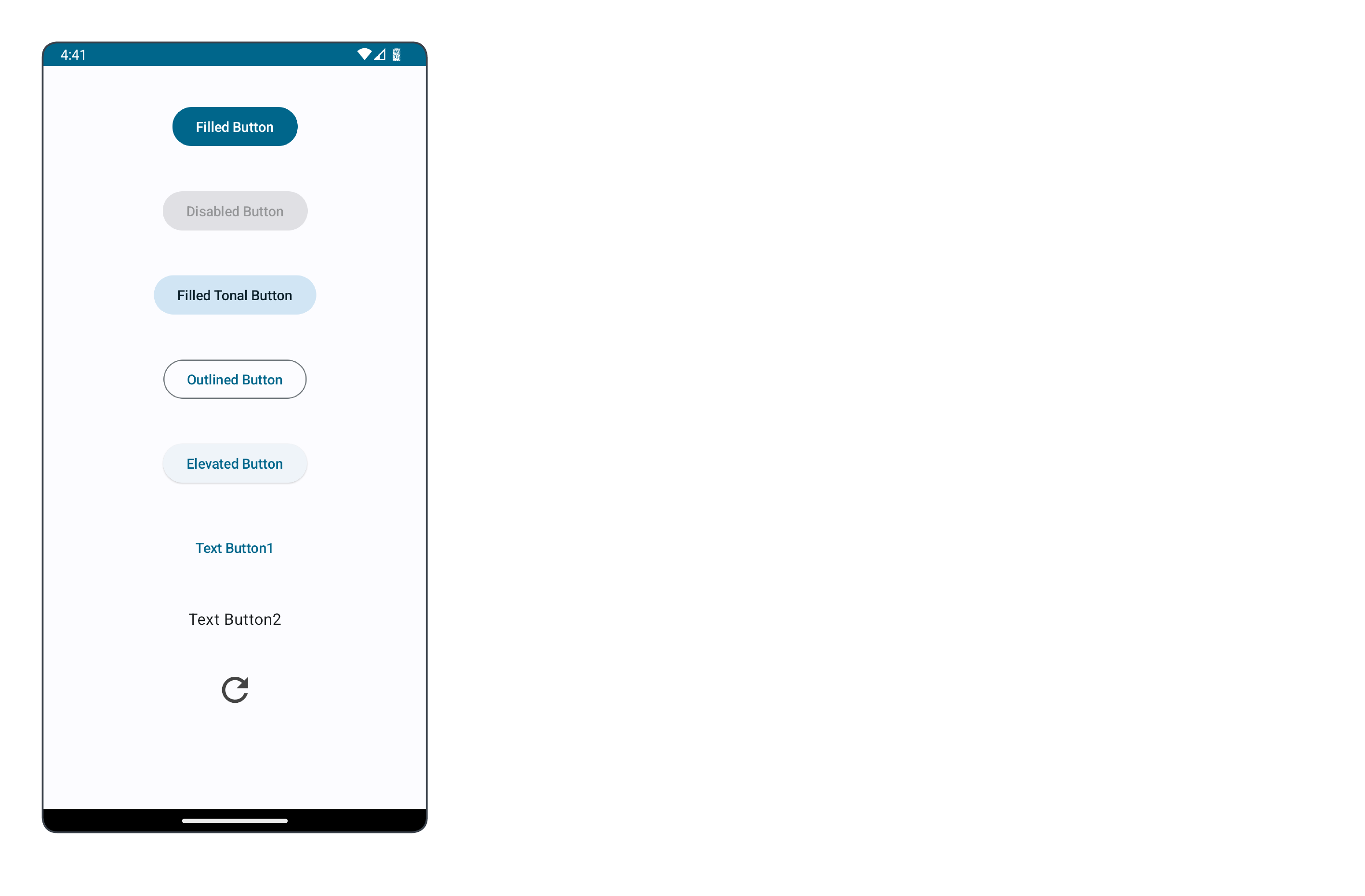 ๋ง ๊ทธ๋๋ก ํด๋ฆญ ๊ฐ๋ฅํ ์์ด์ฝ์ด๋ผ๊ณ ๋ณด๋ฉด ๋๋ค. ์ด ๋ฒํผ Composable์ Icon์ ์์ ์์ดํ ์ผ๋ก ๊ฐ๋๋ค. imageVectorParam์ผ๋ก๋ Icons.Filled.Refresh์ ๊ฐ์ด ๊ธฐ๋ณธ์ผ๋ก ์ ๊ณต๋๋ ์์ด์ฝ์ ์ฌ์ฉํ ์ ์๋ค.