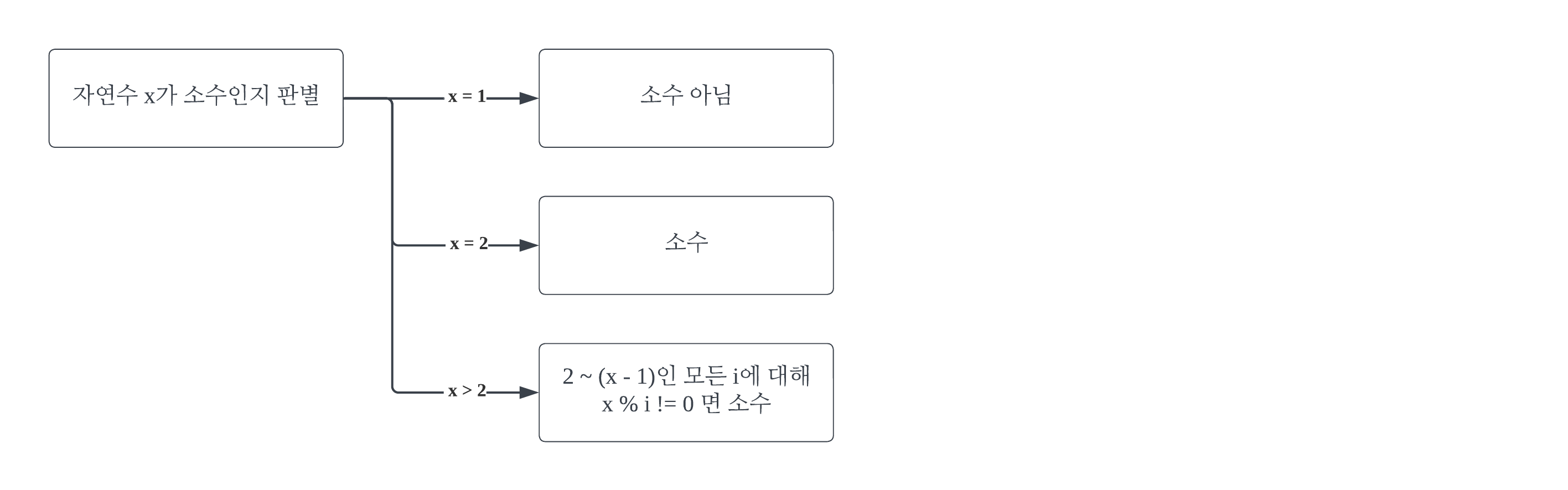 if(number % i == 0) { // 나눠서 나머지가 없는 수가 있는가? 즉, 약수가 존재하는가?