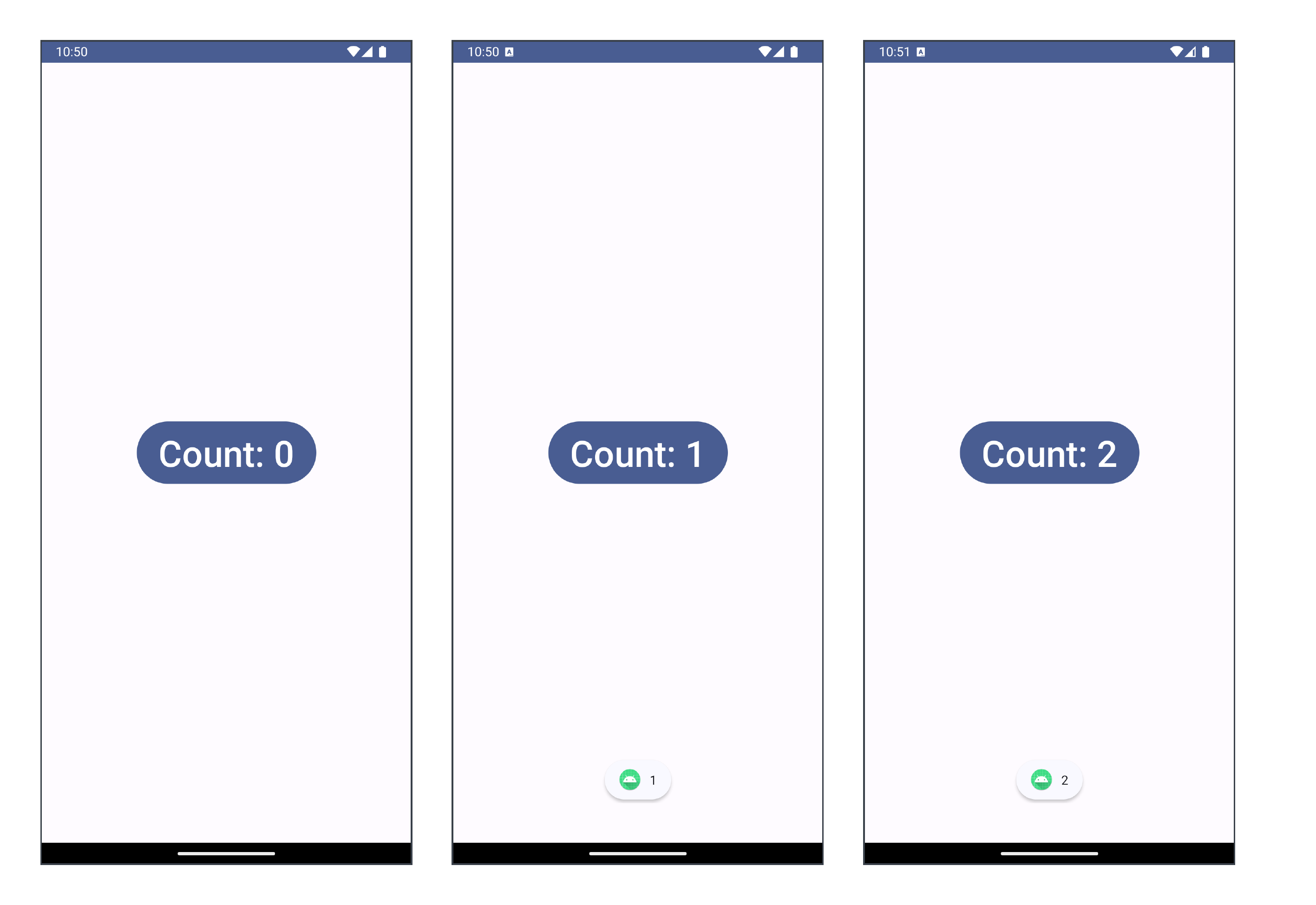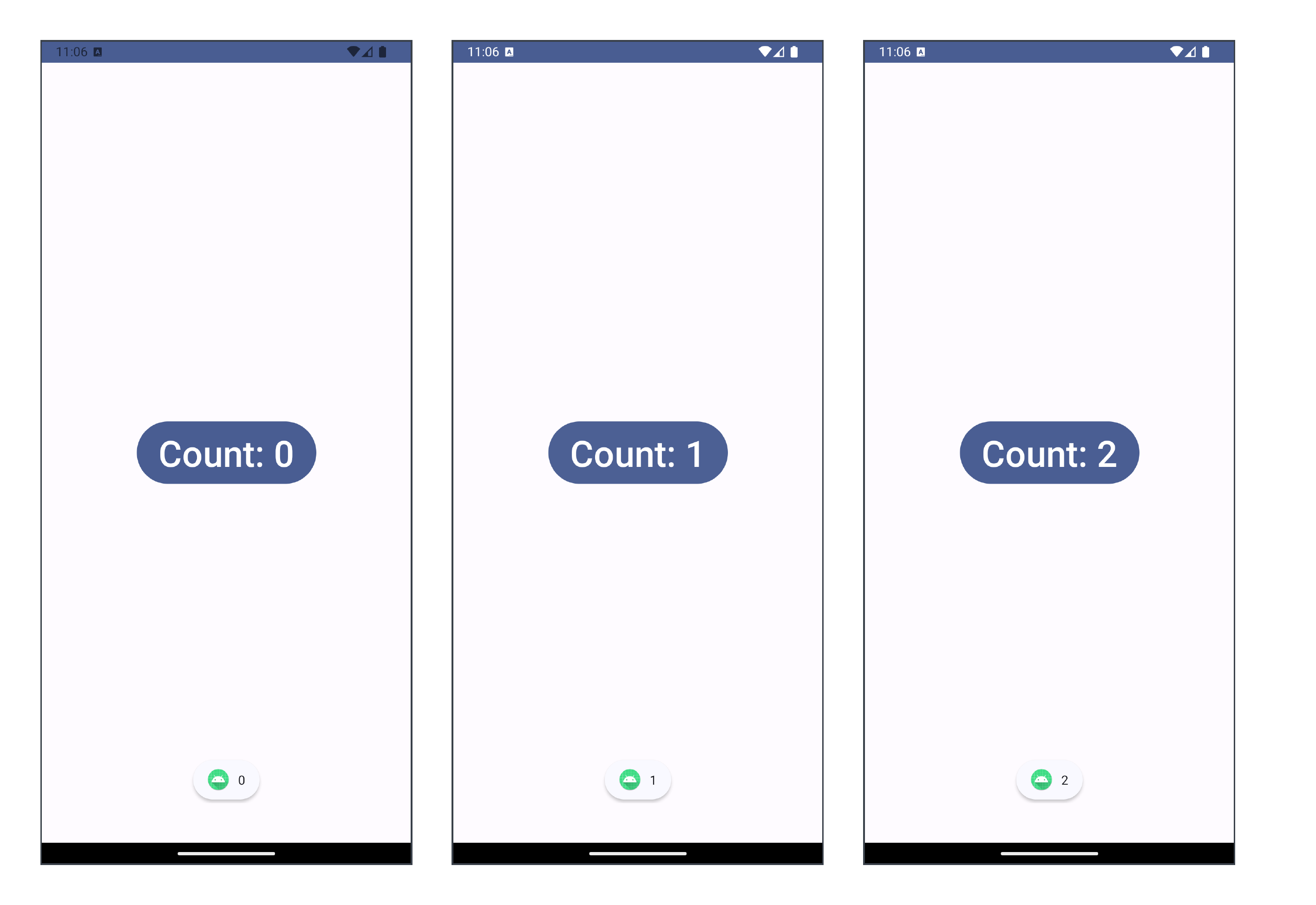 위의 게시글의 #7에서, 버튼을 누르면 화면에 표시된 count가 1씩 증가하는 안드로이드 프로젝트를 다운로드 할 수 있다. 이 프로젝트는 화면에 표시될 count를 State로 구현했다. 해당 프로젝트의 코드를 수정해나가는 방식으로 본 게시글을 전개해보겠다.