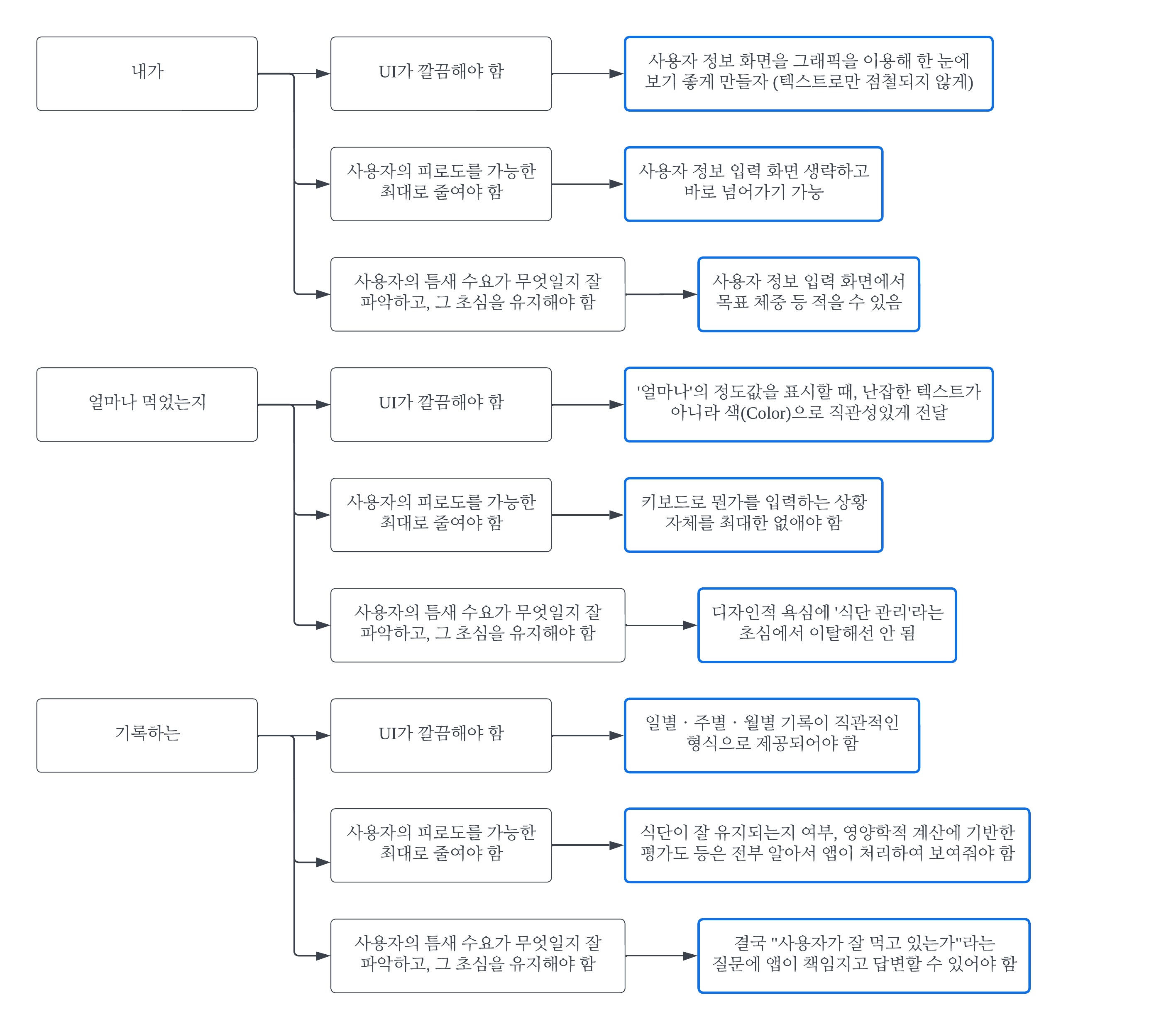 Nutri Capture๋ฅผ ํ ๋ฌธ์ฅ์ผ๋ก ์์ฝํ๋ฉด, "๋ด๊ฐ ์ผ๋ง๋ ๋จน์๋์ง ๊ธฐ๋กํ๋ ์ฑ"์ด๋ค. ์ด ๋ฌธ์ฅ์ ์ฑ์ผ๋ก ๊ตฌํํ ๊ฒ์ด๋ค. ๊ทธ ๊ตฌํ์ ๋ฐฉ๋ฒ(How)์ #3์ ์๋ ์์น์ ๊ธฐ๋ฐํด์ผํ ํ