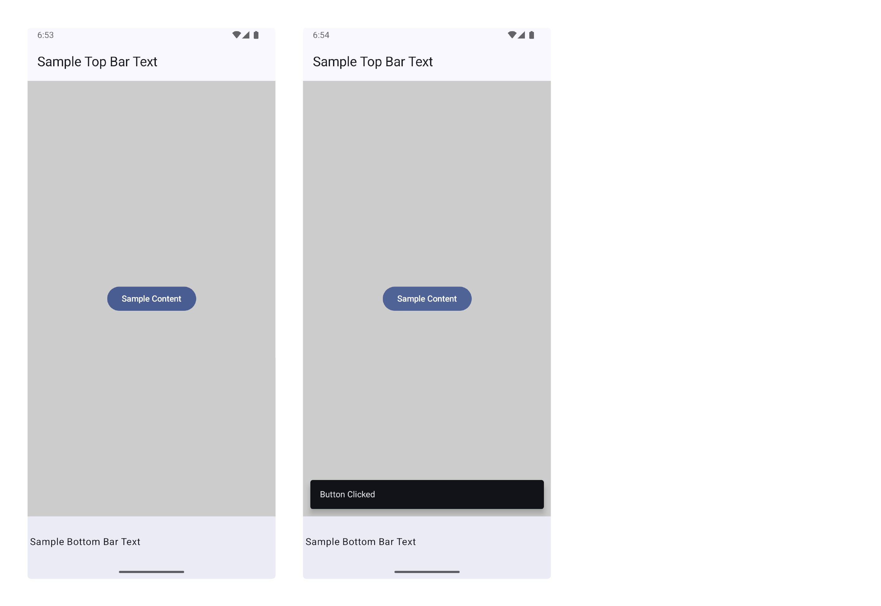 content = { Text("Sample Bottom Bar Text") }