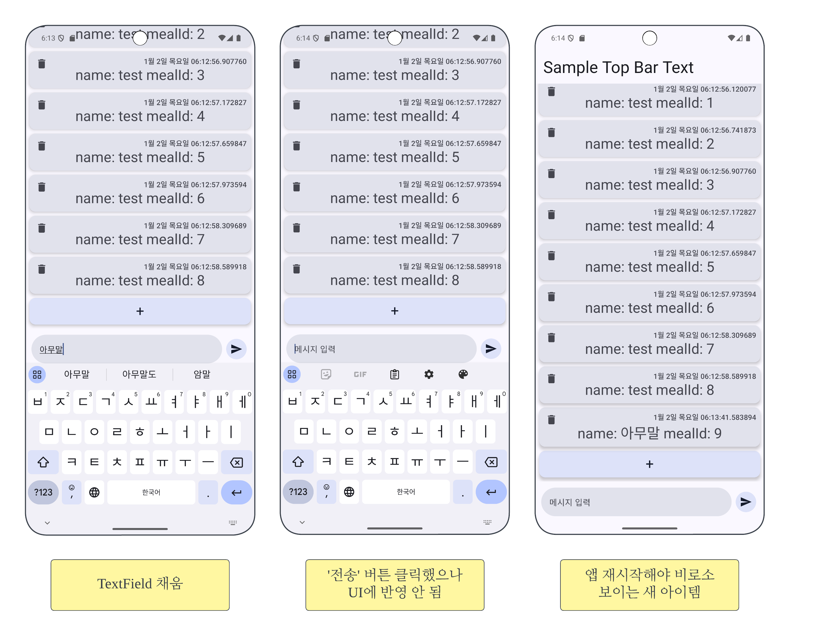 ํ์ง๋ง #1-1๋ฅผ ํ๋ก์ ํธ์ ์ ์ฉํด๋, #3-1์์ ๋ณด๋ฏ UI๊ฐ ์ ๋ฐ์ดํธ ๋์ง ์๋๋ค. '+' ๋ฒํผ์ ๋๋ฅด๋ ๊ฒฝ์ฐ์๋ ์ ๋๋ ๊ฒ๊ณผ ๋์กฐ์ ์ผ๋ก ๋ง์ด๋ค.