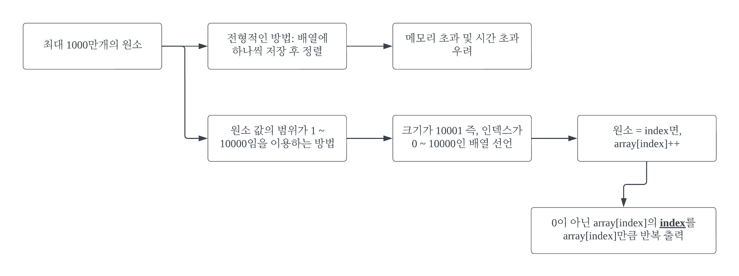 int[] numberCounts = new int[10001]; // 인덱스 중 0을 제외한 나머지 1 ~ 10000만 사용할 것임