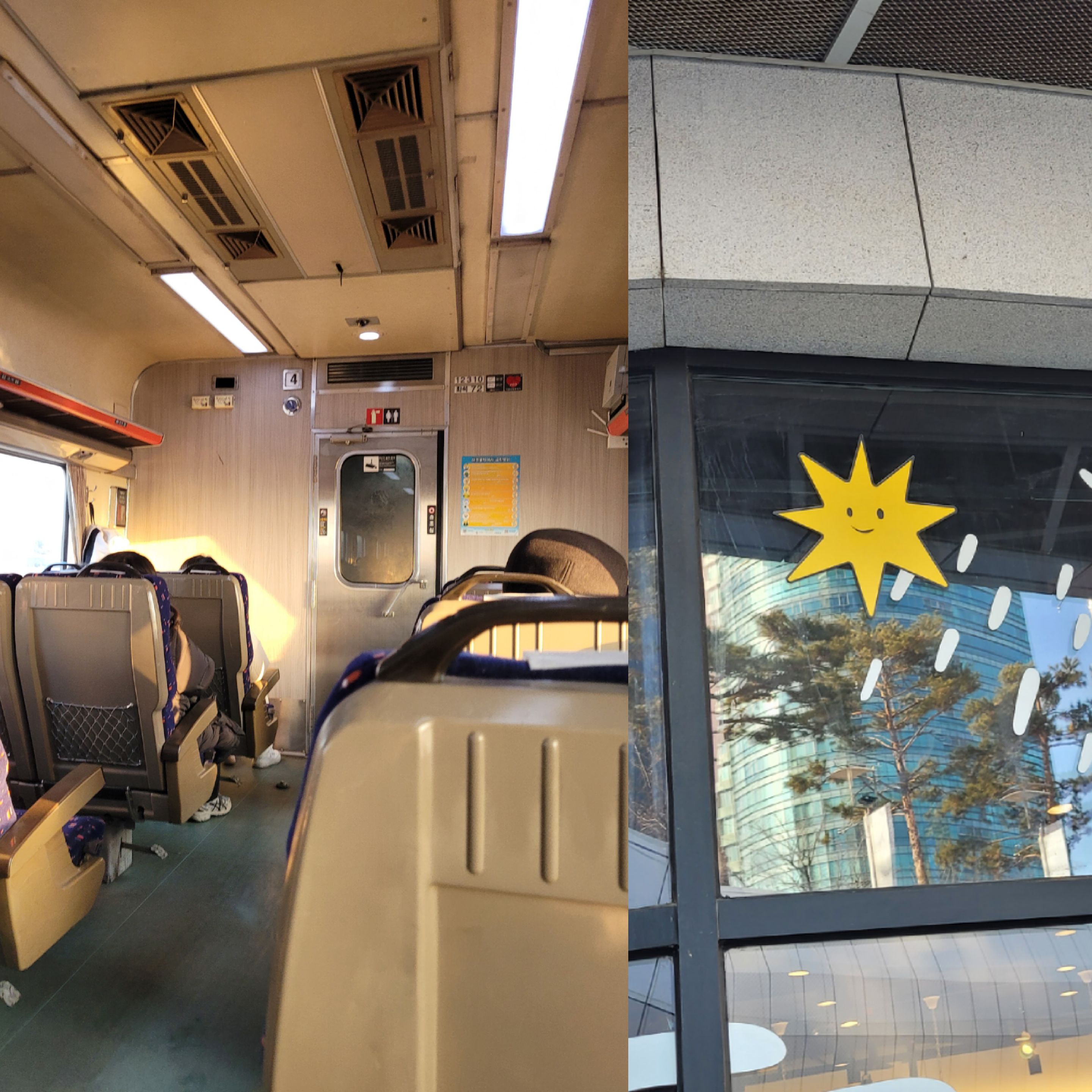 ์ฝ์์ค๊น์ง ๊ธฐ์ฐจ + ์งํ์ฒ ๋ก ๊ฐ๋ค. ์ถ์ด ๋ ์จ์๋ค. ์ฝ์์ค์ ์ด๋ ๊ฐ๊ฒ ์ ๋ฆฌ ๋ฒฝ์ ๋ญ๊ฐ ๊น์ฐํ ์บ๋ฆญํฐ๊ฐ ์ธ์๋์ด ์์๋ค.