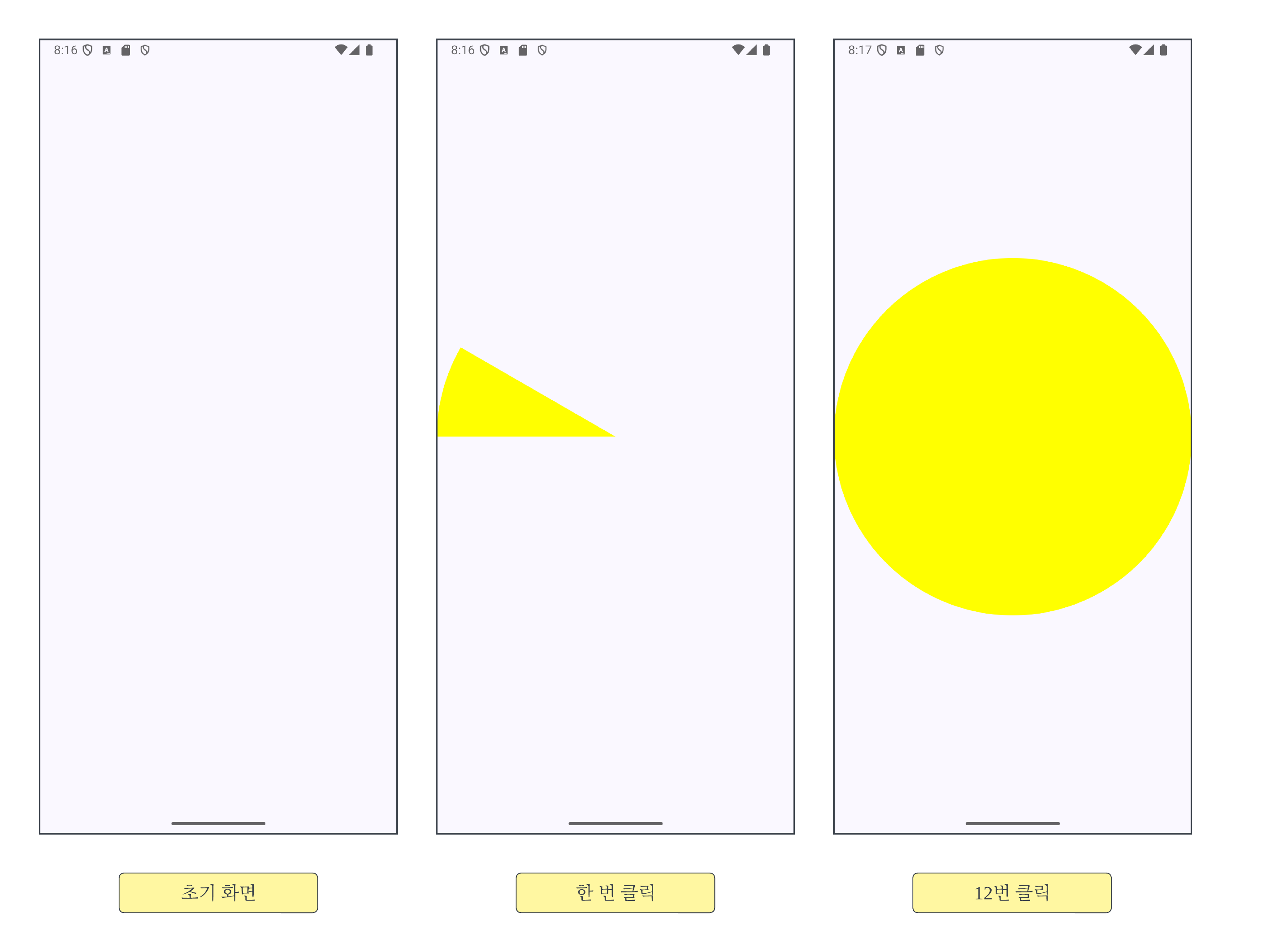 sweepAngle: Float, // startAngle๋ก๋ถํฐ ์ผ๋ง๋ ํธ๋ฅผ ๊ทธ๋ฆด์ง์ ์ ๋๊ฐ