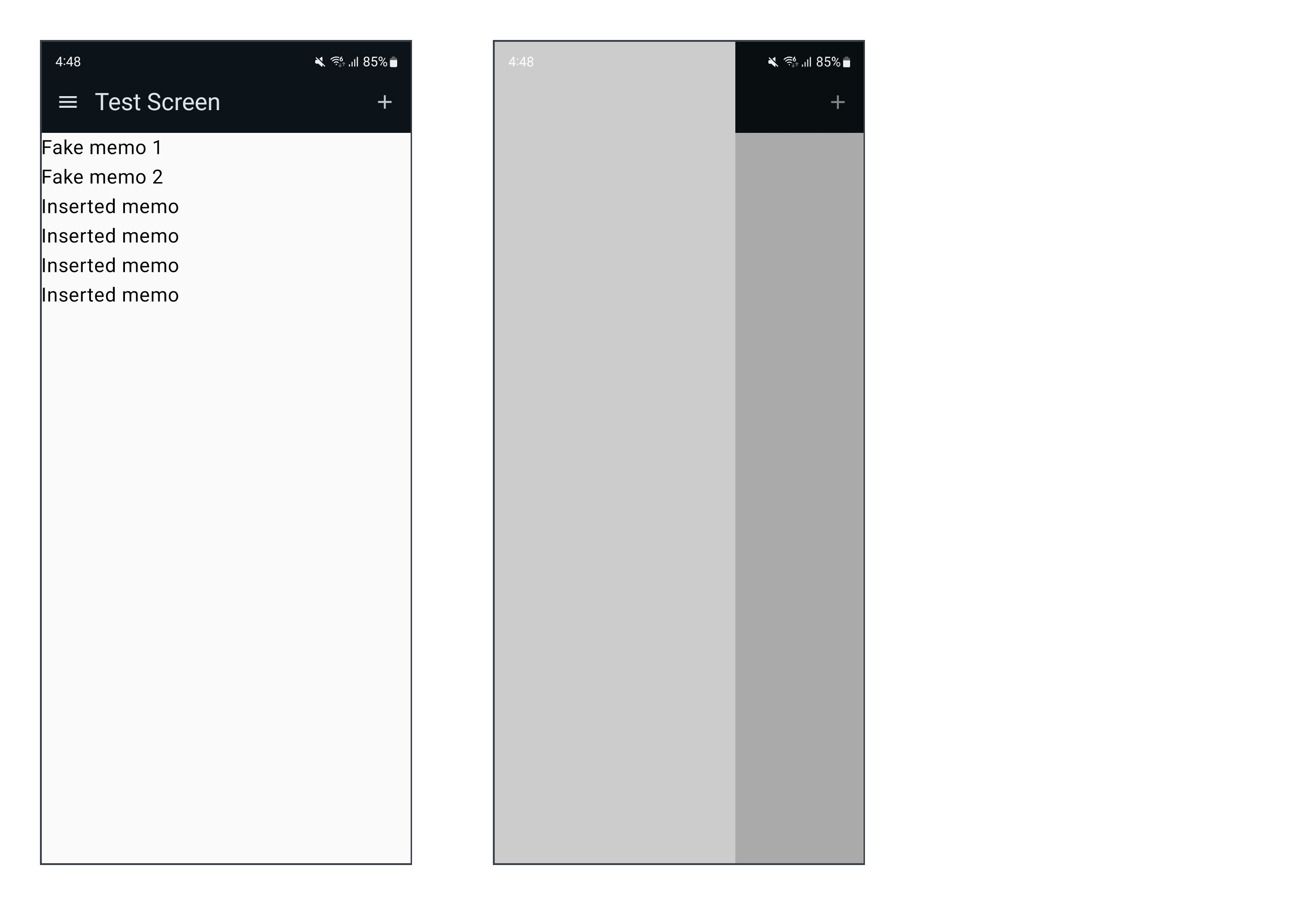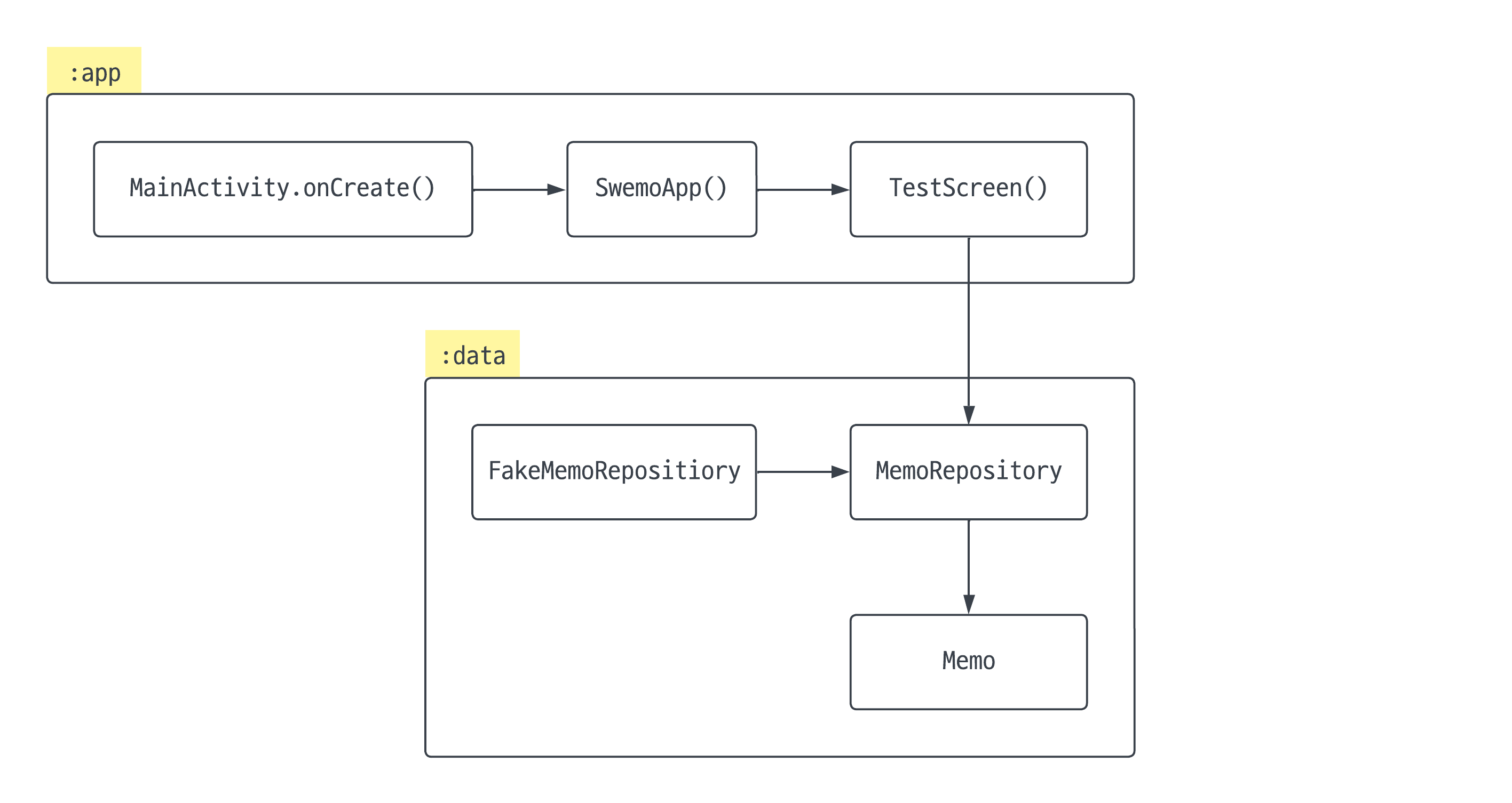 - FakeMemoRepository ์ถ๊ฐ ๋ฐ ์ด๋ฅผ ํ์ฉํด TestScreen()์ ์์ฃผ ๊ฐ๋จํ ํ ์คํธ UI ์์ฑ
