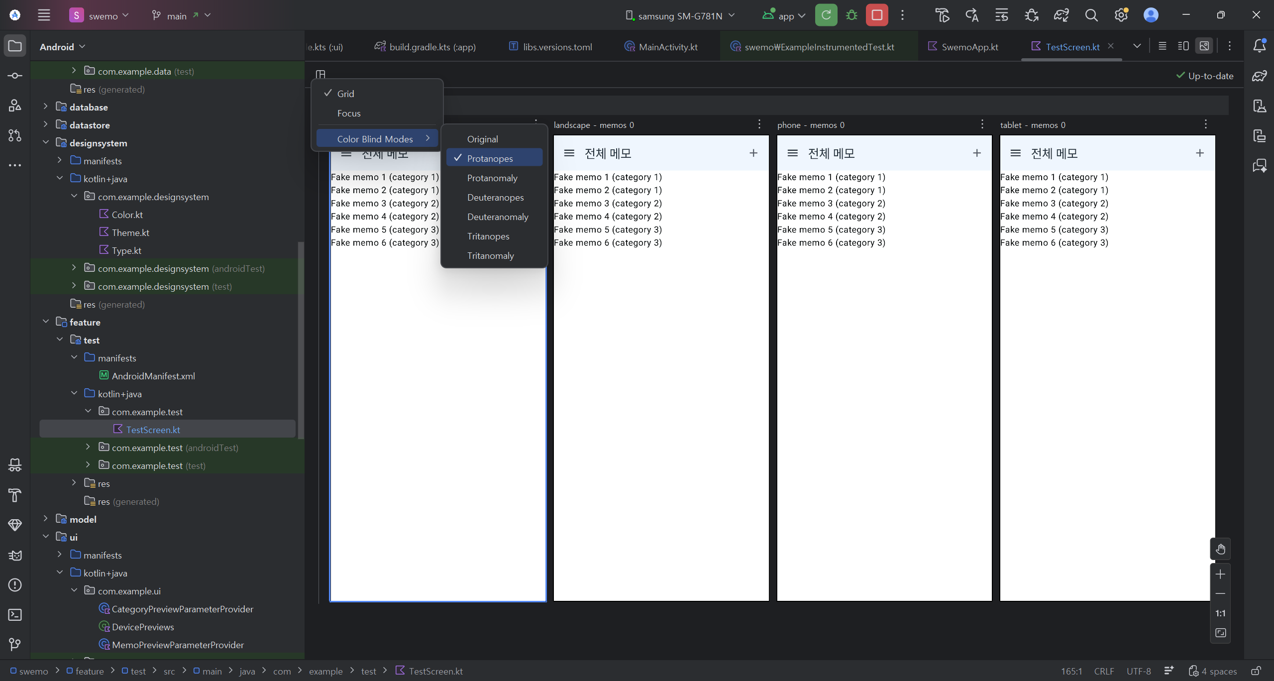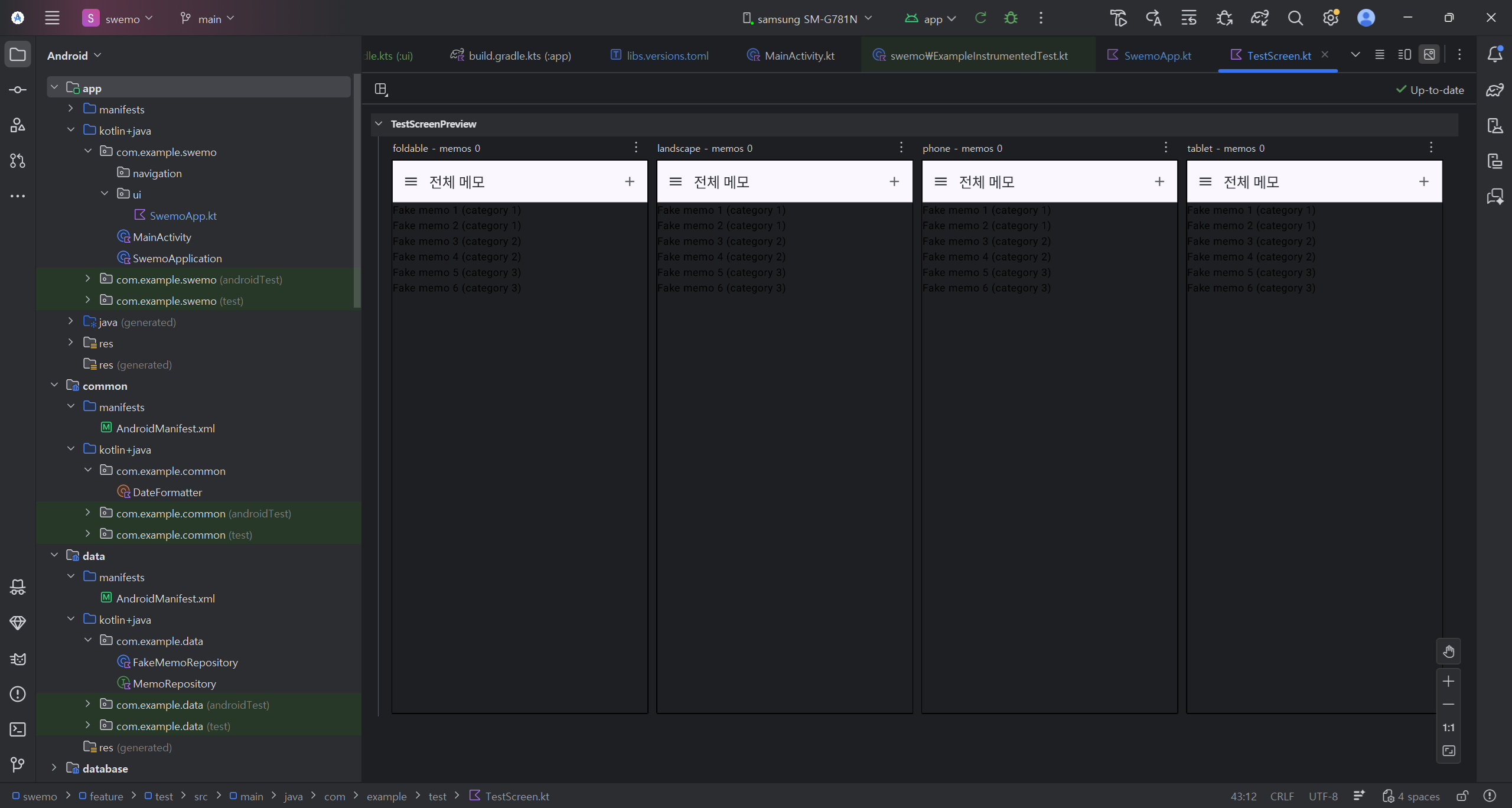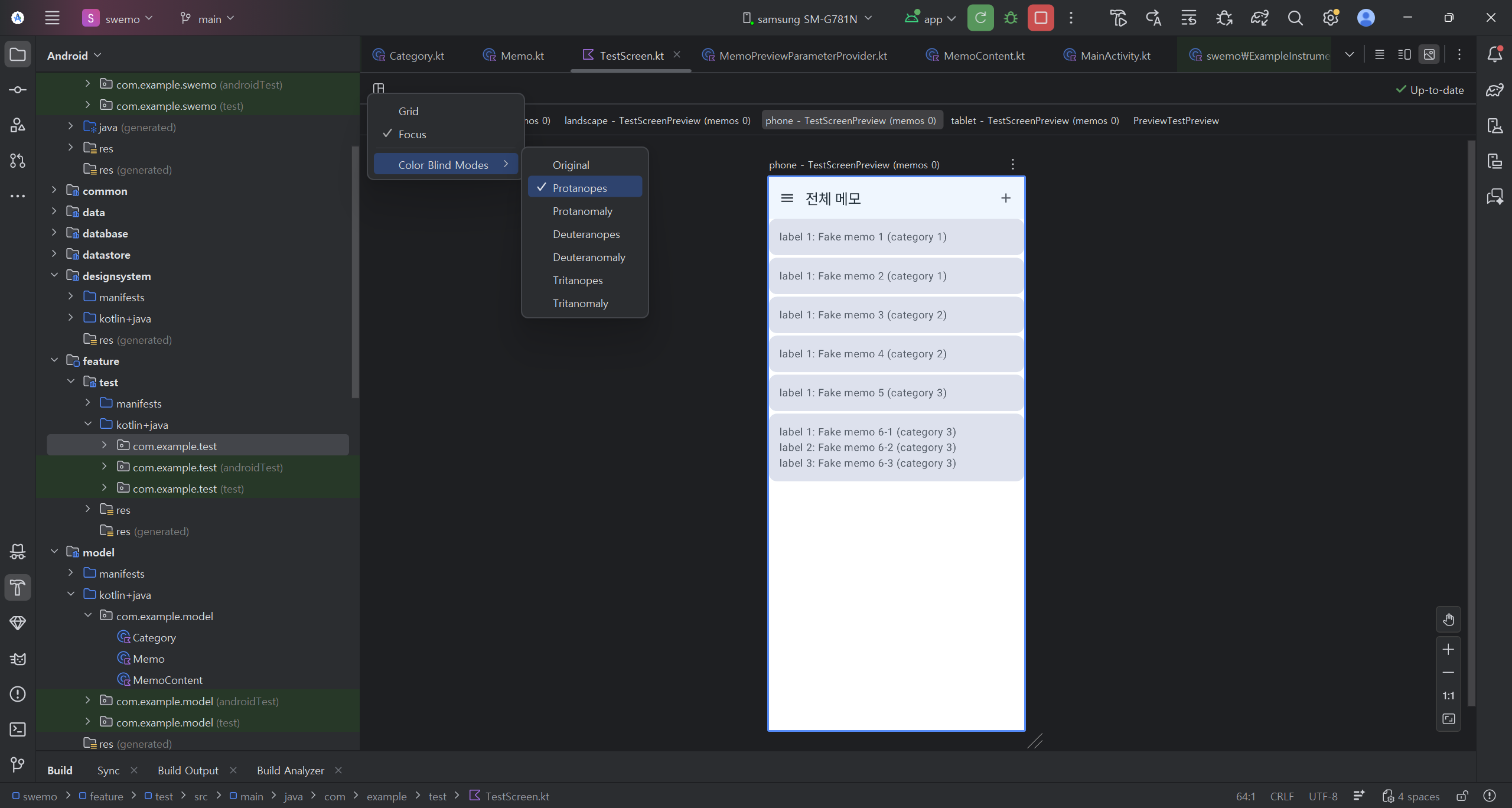 - TestScreen(categories: List<Category>, memos: List<Memo>, ...)