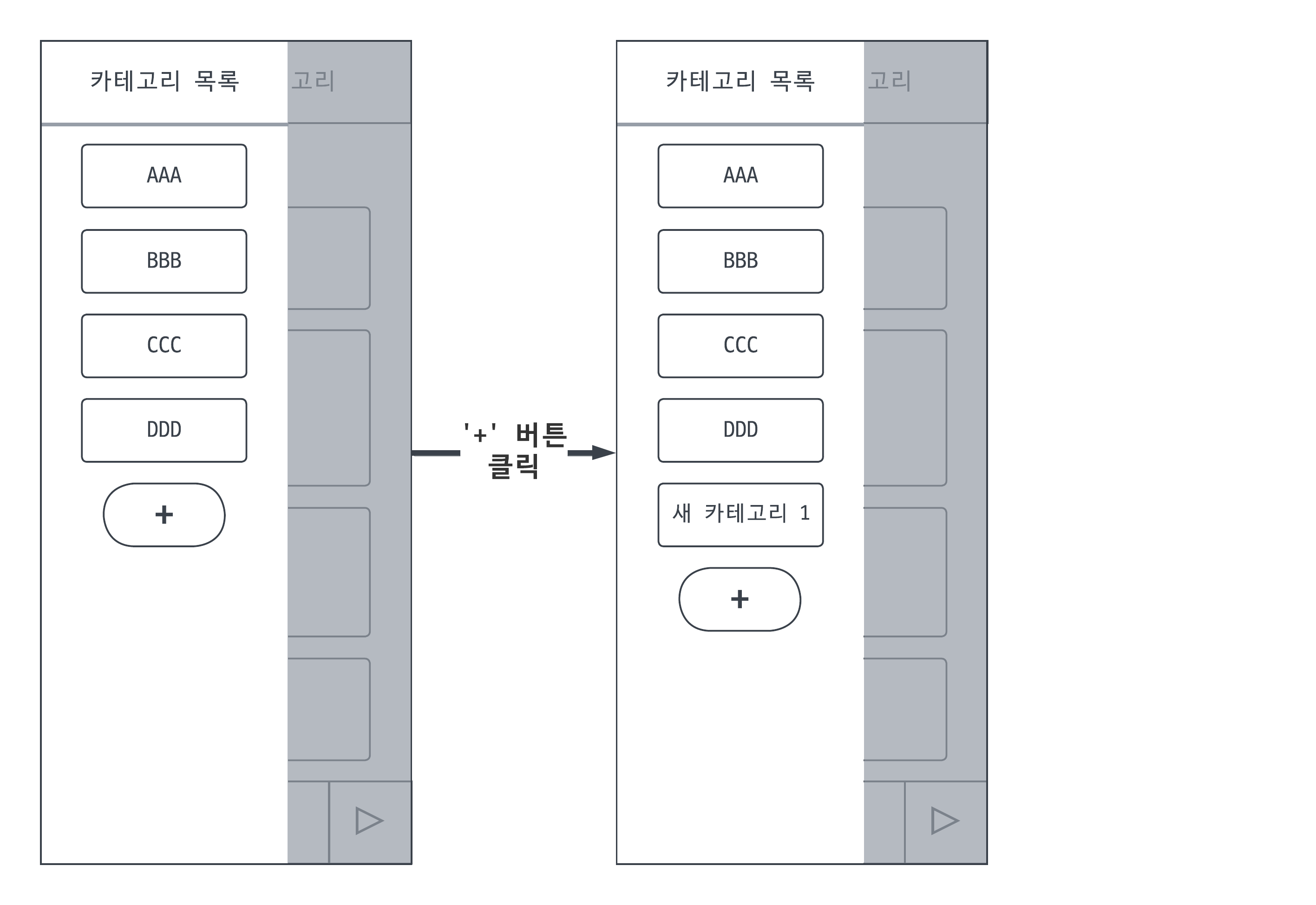 - ์นดํ ๊ณ ๋ฆฌ ๋ฆฌ์คํธ์ '+' ๋ฒํผ ์ถ๊ฐ