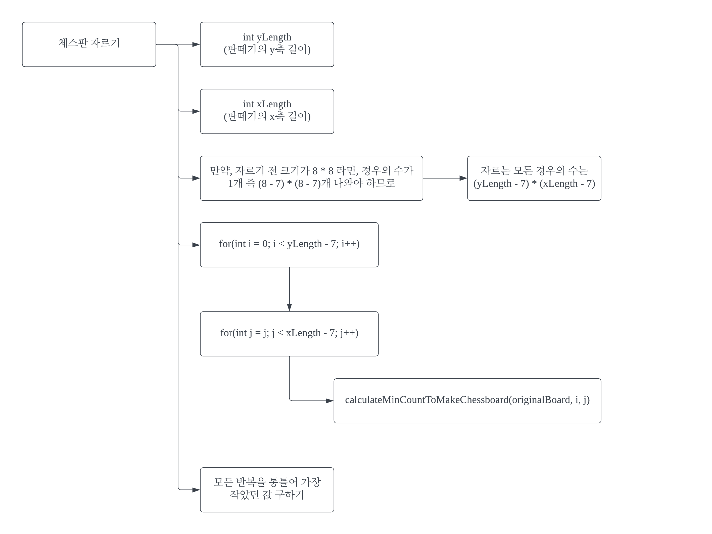 // 체스판을 자르는 모든 경우의 수에 대해 calculateMinCountToMakeChessboard() 수행