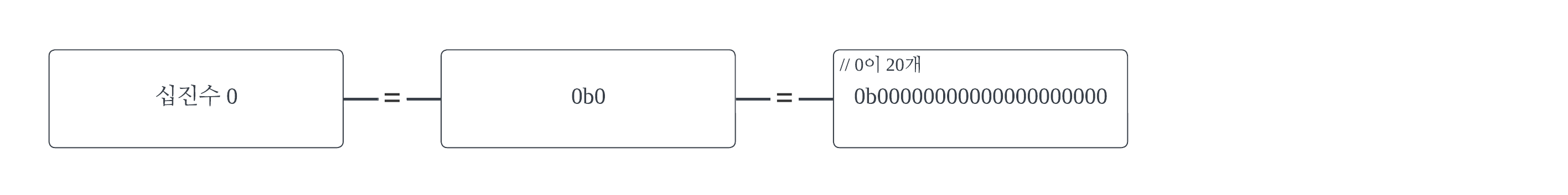 문제의 조건 자체는 쉽지만, 테스트 케이스가 아주 많다. 따라서 빨리 계산해야 한다. 그렇게 하기 위해서 비트 연산을 이용한다. 먼저, 십진수로 값이 0인 변수를 선언하고, 그 변수에 0비트가 20개 있다고 친다. 오른쪽에서부터 n번째 자리에 있는 비트가 n이 '집합'에 존재하는지의 유무를 표시한다고 생각한다. 1이면 존재하고, 0이면 존재하지 않는다.
