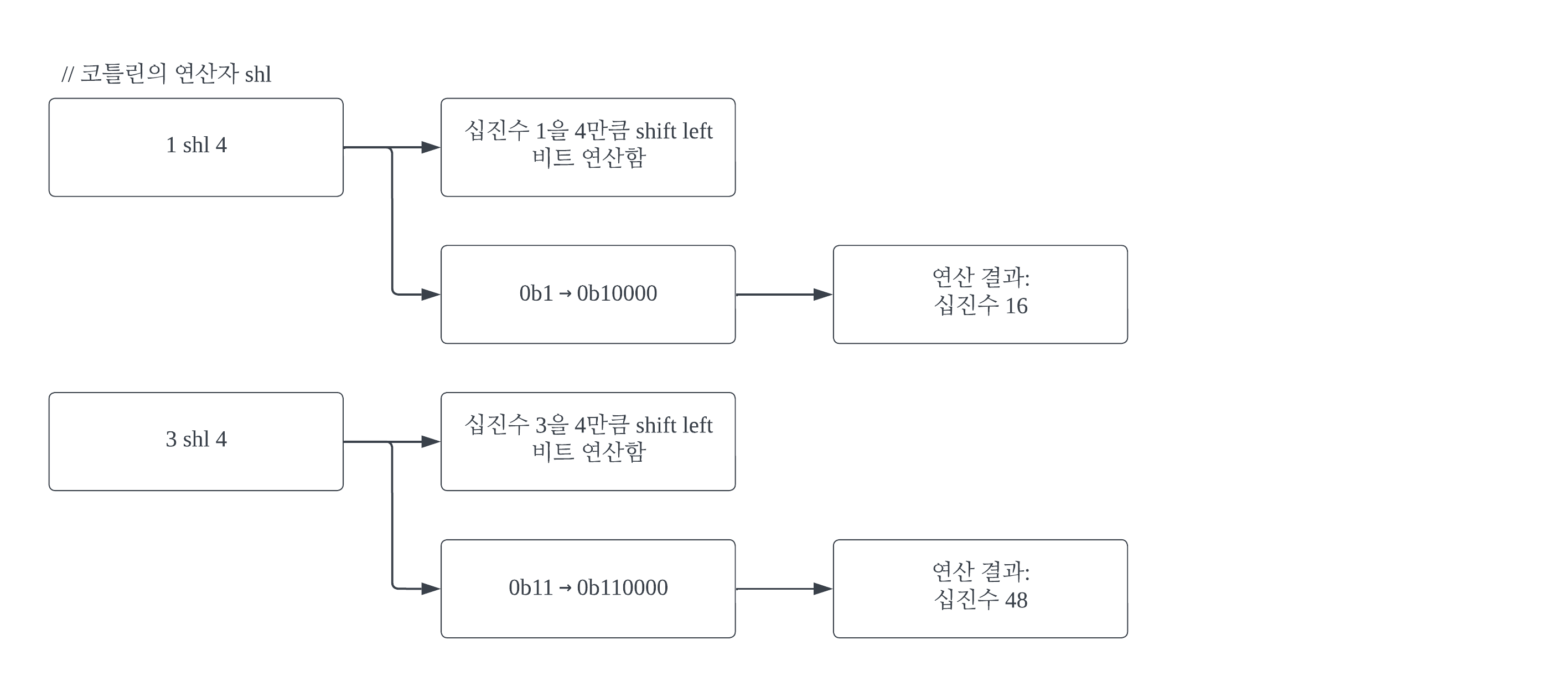 이 문제의 풀이를 위해 주요하게 사용할 비트 연산은 << 연산 (left shift 연산)이다. 코틀린에서는 해당 연산을 shl라는 연산자로 지원한다. 1 shl a는 2진법으로 (a + 1)번째 자리가 1이고 나머지는 0인 수를 도출한다. 따라서 (1 shl (a - 1))로 a라는 값을 가지는 수가 '집합'에 존재함을 나타낼 수 있다.