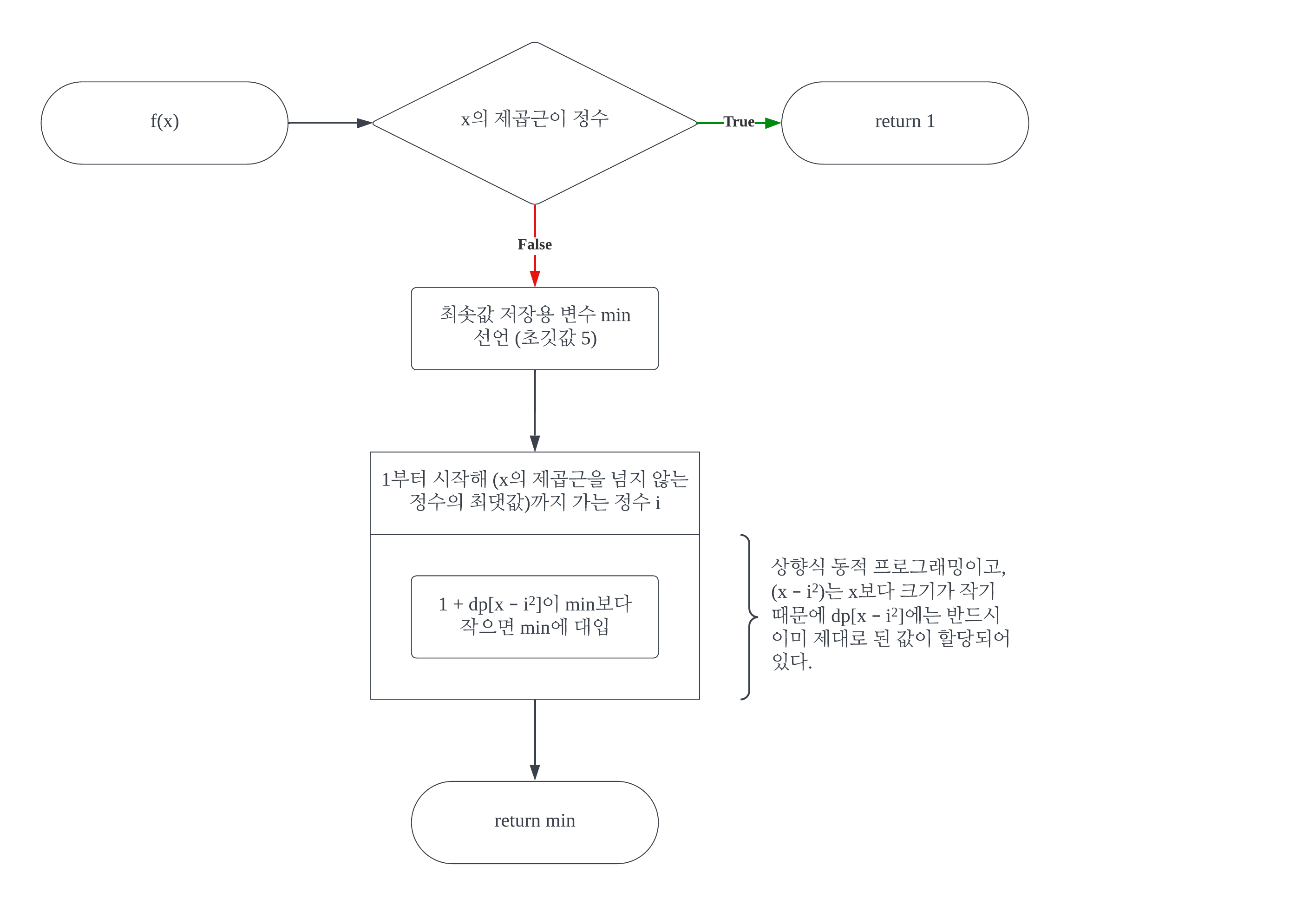 #1-4에서 f(x)의 값을 dp[x]에 대입해 나갈 것이므로, #1-2을 위과 같이 수정할 수 있다.
