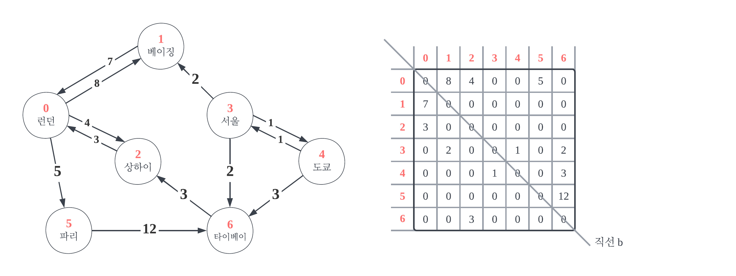 #3-1μμλ μΈκΈνμ§λ§, κ°μν λ²μ μ΄ μλ κ²½μ° μΈμ λ°°μ΄μμ 0λ² μΈλ±μ€λ μ°κ²°λ μ μ μ κ°―μκ° μλλΌ, λ€λ₯Έ μ μ μΌλ‘ κ° μ μλ κ°μ μ κ°―μλ€. μ΄ μ¬μ€μ μ ν₯ κ·Έλνμμ μ€μνκ² κΈ°μ΅ν΄λμ΄μΌ νλ€. λ°λμ μλ°©ν₯μΌλ‘ μ°κ²°λλ 무ν₯ κ·Έλνμ λ¬λ¦¬, μ ν₯ κ·Έλνλ λ¨λ°©ν₯μΌλ‘λ μ°κ²°λ μ μλ€. μλ₯Ό λ€μ΄ μ κ·Έλνμμ μμΈμ λ² μ΄μ§κ³Ό 'μ°κ²°'λμ΄μμ§λ§, λ°λλ‘ λ² μ΄μ§μ μμΈκ³Ό 'μ°κ²°'λμ΄μμ§ μμ μ μ΄λ€. 'κ·Έλν λΆμΌμμμ μ°κ²°'μ΄λΌλ λ¨μ΄λ μ΄λ κ² μΈμΈνκ² λ°μ Έλ΄μΌ νλ κ²μ΄λ€. λ°λΌμ "(κ°μν λ²μ μ΄ μλ κ²½μ°) 0λ² μΈλ±μ€λ λ€λ₯Έ μ μ μΌλ‘ κ° μ μλ κ°μ μ κ°―μλ€!"λΌκ³ κΈ°μ΅ν΄λμ.
