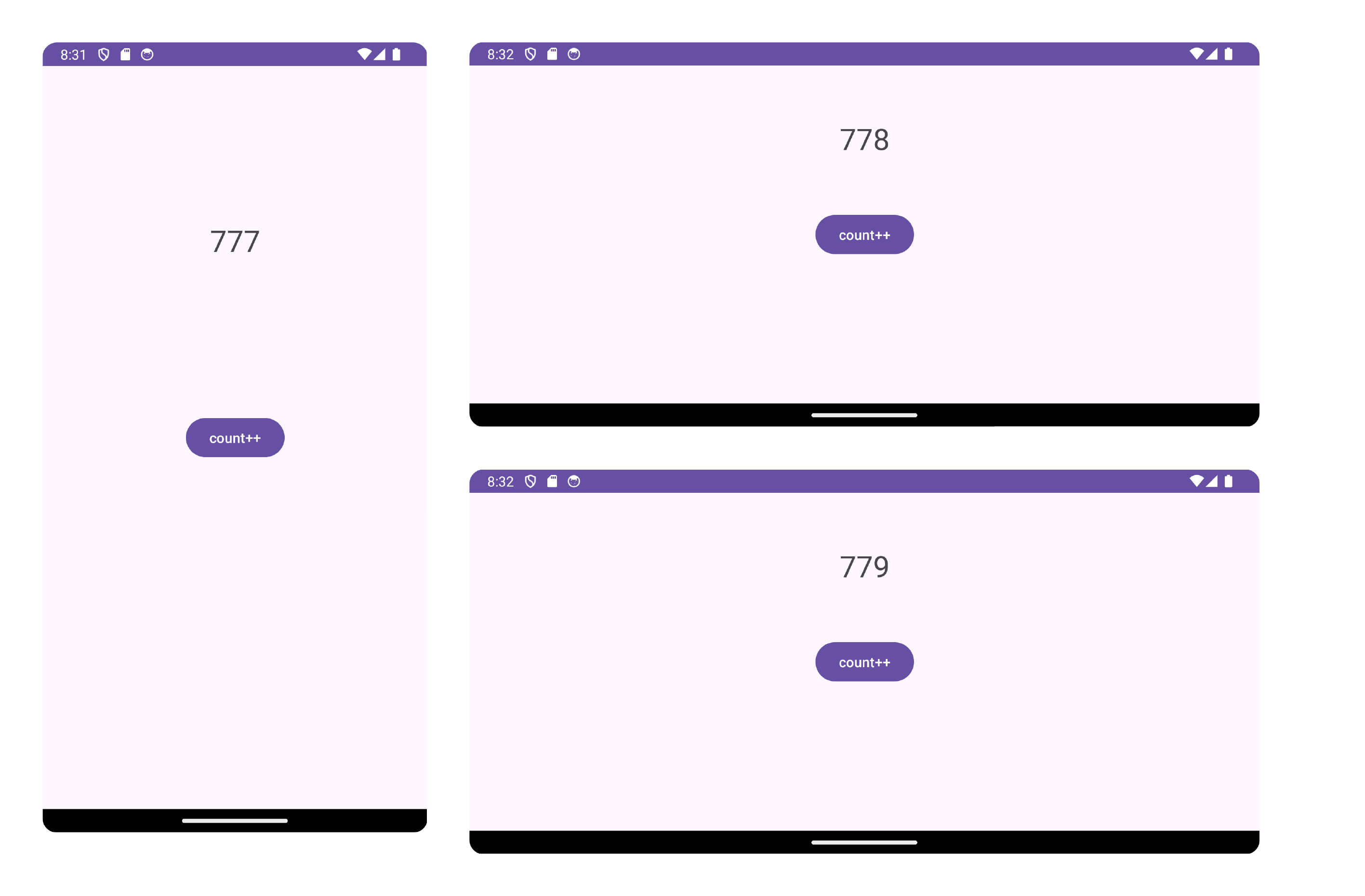 #1 View Model์ ํ์์ฑ#1-1 ์์ ๋ฒํผ์ ๋๋ฅด๋ฉด TextView์ text๊ฐ 1์ฉ ์ฆ๊ฐํ๋ ์์ ์ฑ์ด๋ค. MainActivity.kt ์ฝ๋๋ ๋ค์๊ณผ ๊ฐ๋ค. // package com.example.viewmodelbasics import androidx.appcompat.app.AppCompatActivity import andro