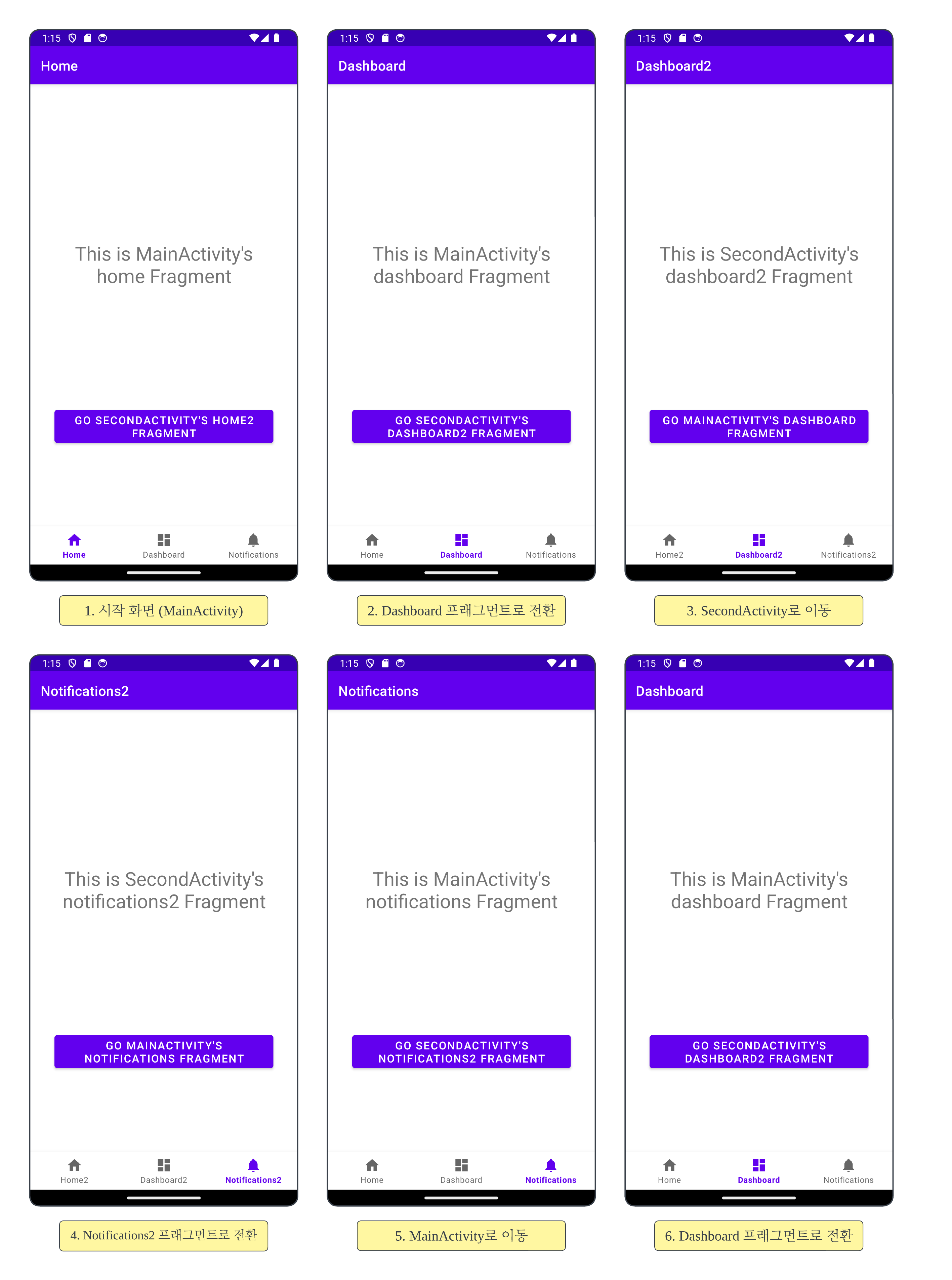 3. SecondActivity์ Dashboard2 ํ๋๊ทธ๋จผํธ๋ก ์ด๋